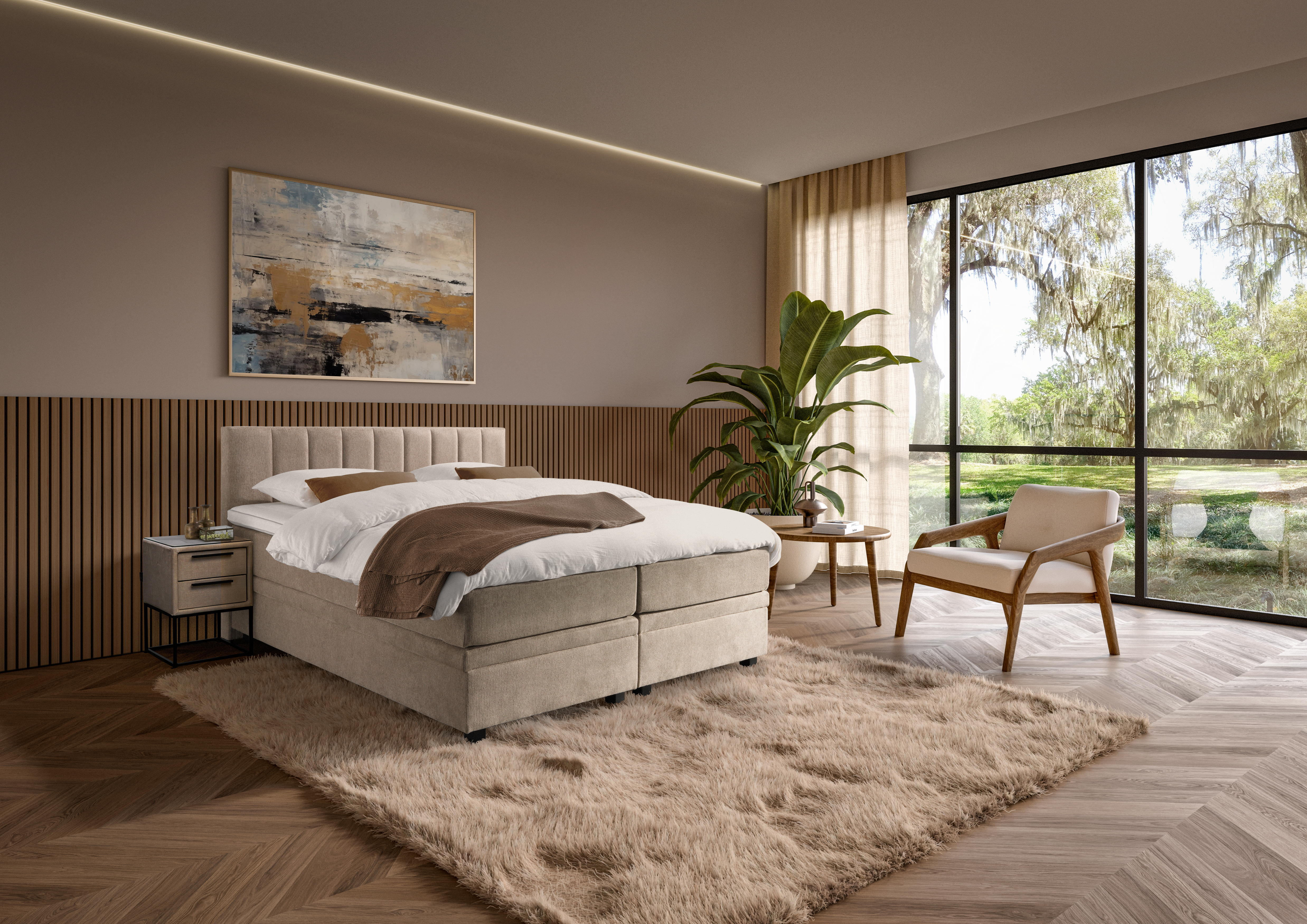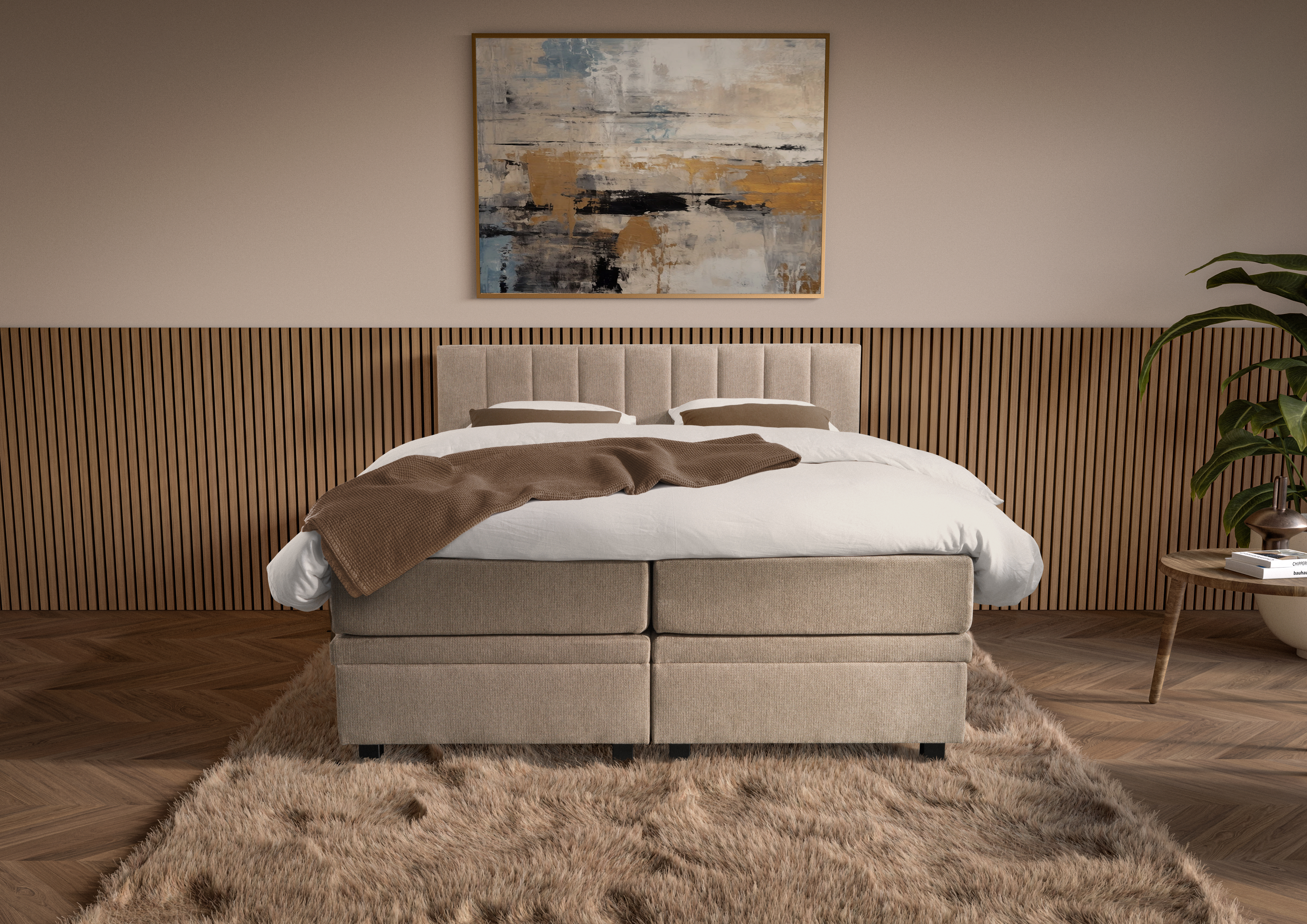 Ontdek de luxe boxspring Storage, waar comfort en functionaliteit samenkomen. Dankzij de handige opbergruimte onder het bed geniet je van extra plaats zonder in te boeten aan stijl. De meegestoffeerde pocketverenmatrassen met 7-comfortzones in dezelfde stof als de boxspring zorgen voor een harmonieuze uitstraling, terwijl de 6 cm dikke koudschuimtopper extra comfort en optimale ventilatie biedt voor een zalige nachtrust. Verkrijgbaar in diverse afmetingen — 90 cm, 140 cm, 160 cm en 180 cm.