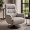 Moderne relax op een draaivoet.Manueel verstelbare rug,voet en hoofdsteun.Deze relax is te verkrijgen in een mooie waterafstotende stof in verschillende kleuren te verkrijgen.