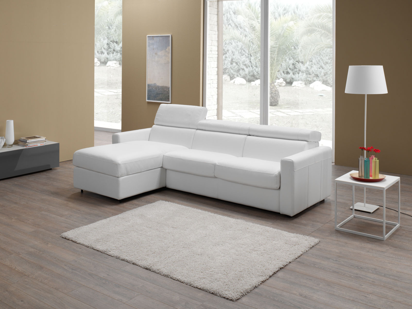 Sofabed Doris is een lederen of stoffen bedbank van puur Italiaanse makelij. Dit sofabed is een strake en moderne zetel met verstelbare hoofdsteunen die in ieder hedendaags interieur past. Deze sofabed is verkrijgbaar in verschillende kleuren leder of stof alsook verschillende modellen van armleuningen.